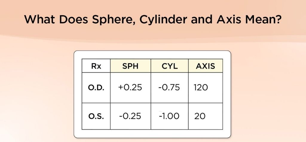 Knowing which column refers to which eye ensures you match each number to the correct lens when ordering glasses. If your prescription uses RE and LE instead of OD and OS, they mean the same thing.